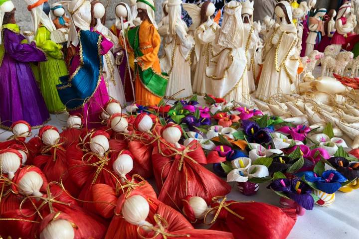 Guanengos, manteles, caminos de mesa, vestidos, cinturones, pantuflas, así como piezas de cobre y de madera, son las artesanías que estas mujeres trabajadoras, muestran en el Pabellón Don Vasco a todas las fam... Ver más...