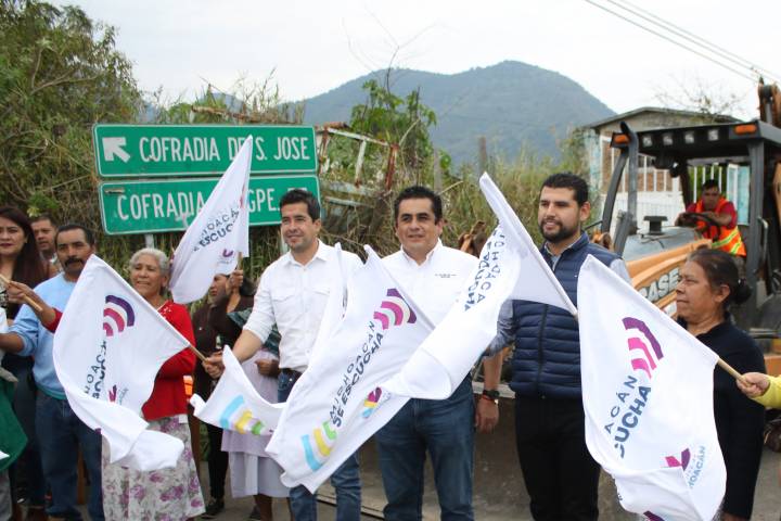El titular de la SecretarÃa de Comunicaciones y Obras Públicas (SCOP) del estado, José Hugo Raya Pizano; la jefa del Gobierno de Michoacán en la región Hidalgo, Jeovana... Ver más...