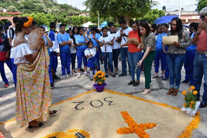 NOTICIAS 02/11/2019COBA de Tuzantla, Institución antorchista ejemplo de excelencia educativa, cultural y deportiva: Jazmín ArroyoPara dar impulso a la tradicional celebración del día de muertos, estudiantes del Colegio de Bachilleres #41 de Tuzantla, plantel impulsado por el Movimiento Antorchista, realizaron el concurso interno de ofrendas y tapetes de aserrín 2019, en el jardín principal de la cabecera municipal, en conjunto con la Federación Nacional de Estudiantes Revolucionarios "Rafael Ramírez", (FNERRR).