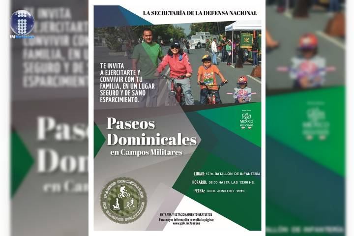 NOTICIAS 22/06/201917 Batallón de infantería fomenta convivencia familiarEl 17 Batallón de Infantería, busca fomentar la convivencia militar a través de un paseo dominical en el interior del Campo Militar 21 B en Zamora Michoacán, ponme además se llevará una carrera de 5 kilómetros, el próximo 30 de junio.