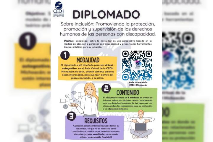 NOTICIAS 26/08/2024Más de 300 personas cursan el Diplomado sobre InclusiónSon más de 300 personas las que se encuentran cursando el diplomado sobre inclusión "Promoviendo la protección, promoción y supervisión de los derechos humanos de las personas con discapacidad", que ofrece la Comisión Estatal de los Derechos Humanos de Michoacán (CEDH), con el objetivo de sensibilizar, concientizar y profesionalizar a las y los participantes, sobre las causas históricas de la discriminación hacia las personas con discapa... Ver más...