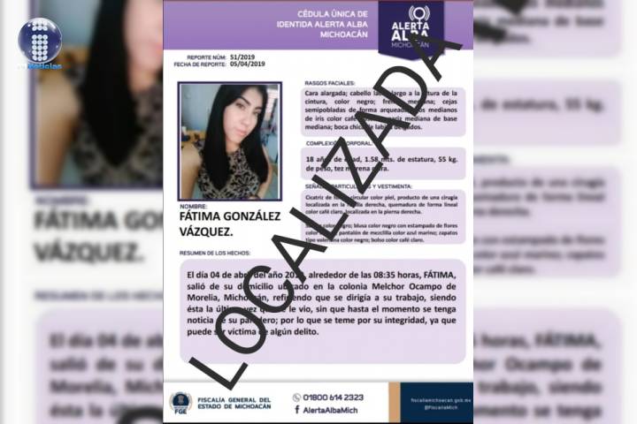 NOTICIAS 06/04/2019Localiza FGE a joven reportada como desaparecida en Morelia; desactivan Alerta Alba