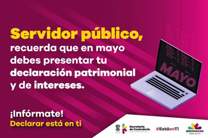NOTICIAS 04/03/2019Pone Secoem en marcha campaña "Declarar Está en Ti"Para coadyuvar al cumplimiento de la Ley de Responsabilidades Administrativas del Estado y que las y los servidores públicos, sujetos obligados por la misma, presenten en tiempo y forma su declaración patrimonial y conflicto de intereses, la Secretaría de Contraloría de Michoacán (Secoem), puso en marcha la campaña "Declarar Está en Ti", en su primera etapa "Infórmate".