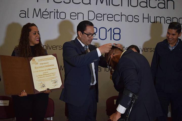 NOTICIAS 10/12/2018Entregan presea al Merito en Derechos HumanosEn el marco del Día Internacional de los Derechos Humanos, el Consejo de la CEDH entregó la Presea Michoacán al Mérito en Derechos Humanos 2018 a Luis Ventura de la Rosa Orozco por su labor en la promoción y defensa de los derechos fundamentales de las personas con discapacidad.