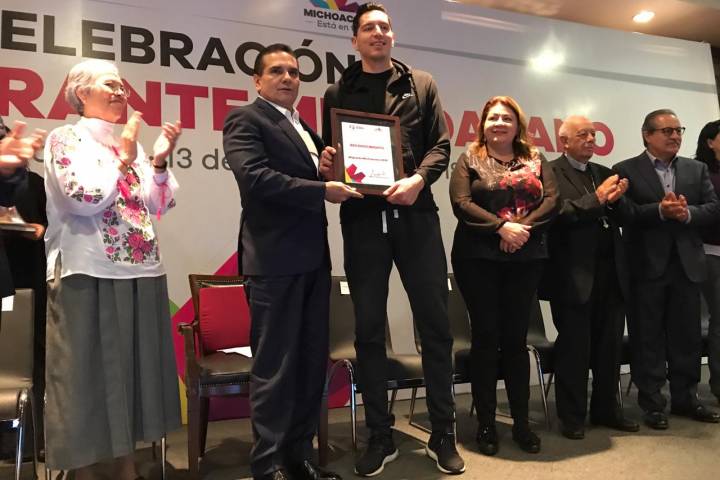 NOTICIAS 13/12/2018Reconocen a Adrián Zamora por el Día del Migrante MichoacanoEl jugador de Aguacateros de Michoacán, Adrián Zamora Fernández, recibió por parte del gobernador Silvano Aureoles Conejo, el reconocimiento como Migrante Michoacano 2018.