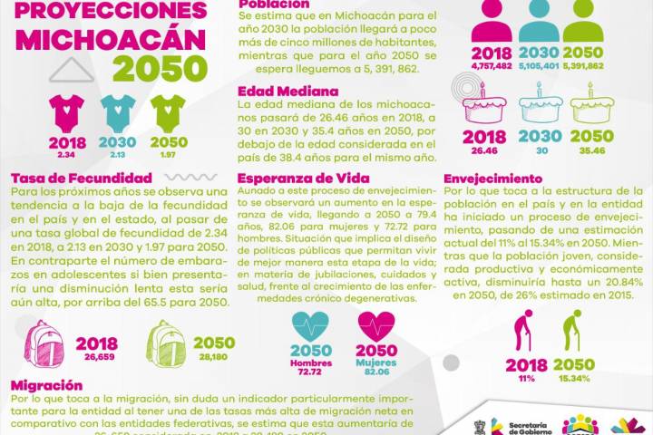 NOTICIAS 22/11/2018Presenta Coespo "Proyecciones de Michoacán a 2050"El Consejo Estatal de Población del Estado (Coespo), presenta un análisis de los principales indicadores que en materia sociodemográfica impactarán en los próximos años en la entidad hasta el año 2050.