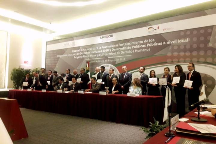 NOTICIAS 16/08/2018Recibe Michoacán reconocimiento por publicación del Programa de Derechos HumanosCon la representación del gobernador del Estado, Silvano Aureoles Conejo y del secretario de Gobierno, Pascual Sigala Paez, la encargada de la Unidad de Derechos Humanos, Karla Sánchez Hernández, recibió de manos del subsecretario de Derechos Humanos de la Secretaría de Gobernación, Rafael Adrián Avante Juárez, un reconocimiento por el compromiso y resultados en el fortalecimiento de la Política de Estado de Derechos Humanos.