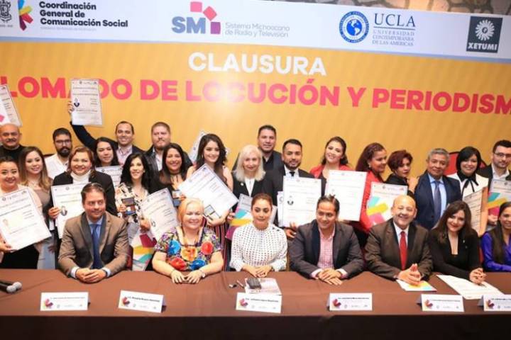 NOTICIAS 07/08/2018Ampliarán a más regiones Diplomado de Locución y Periodismo Derivado de la calidad del programa, así como la buena aceptación de las y los comunicadores michoacanos hacia el Diplomado de Locución y Periodismo, éste llegará a más municipios de Michoacán, anunció la coordinadora general de Comunicación Social, Julieta López Bautista, durante la entrega de constancias a las y los 33 participantes del Diplomado en Uruapan.