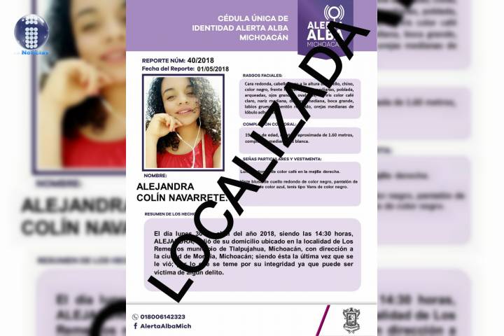 NOTICIAS 03/05/2018Encuentran a joven reportada como desaparecida en compañía de su pareja