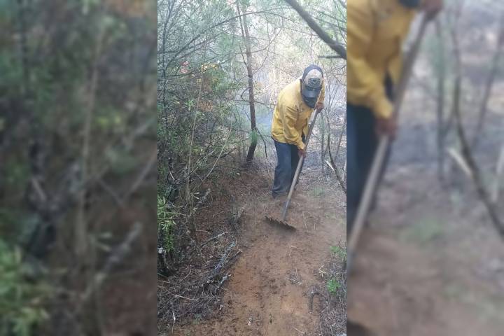 Además, los brigadistas realizan diversas acciones con la finalidad de proteger más de mil hectáreas de pino y encino que no han sido afectadas por el fuego, las cuales se ub... Ver más...