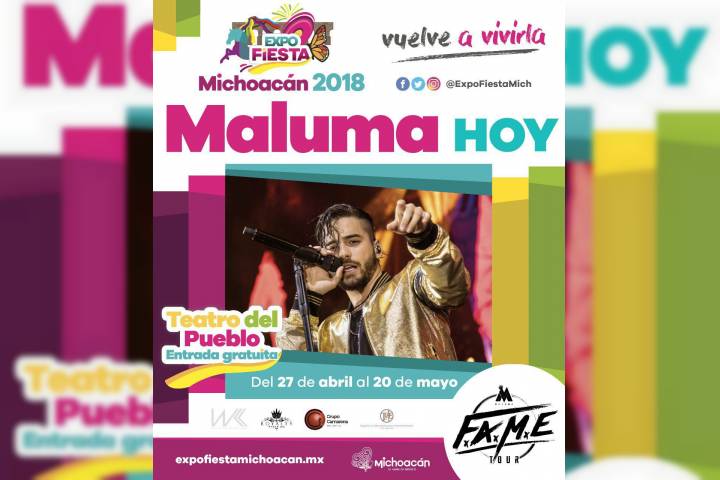 NOTICIAS 01/05/2018Esta noche, Maluma en la Expo Fiesta Michoacán 2018 La música de Maluma invadirá esta noche el Teatro del Pueblo de la Expo Fiesta Michoacán 2018, para deleitar a las miles de fanáticas y fanáticos de uno de los artistas más importantes de la escena musical actual.