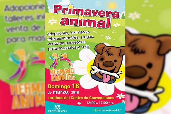 NOTICIAS 14/03/2018Alistan feria de adopción de Primavera 2018 Como cada año, con la llegada de la Primavera, Hermano Animal AC te invita para que participes este domingo 18 de marzo en el Festival Animal de Primavera 2018. El evento se realizará en los jardines del Centro de Convenciones de Morelia (CECONEXPO) de las 12 a las 17 horas.
