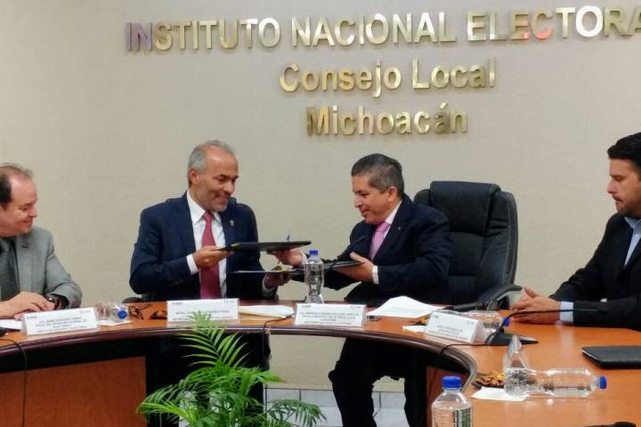 NOTICIAS 04/12/2017Signan INE y Semigrante convenio para promoción del voto de Michoacanos en el extranjero Con la finalidad de difundir materiales impresos y digitales para la promoción de los derechos político-electorales, con especial énfasis en temas relacionados con la credencialización y el voto de los de mexicanas y mexicanos residentes en el extranjero, promover los valores democráticos y la cultura democrática, la Secretaría del Migrante (Semigrante) y la Junta Local Ejecutiva del Instituto Nacional Electoral (INE), firmaron el "Conveni... Ver más...