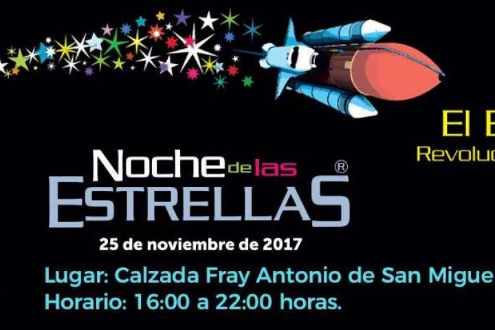 NOTICIAS 22/11/2017Invitan a la Noche de las Estrellas 2017Con el objetivo de acercar el conocimiento en el campo de la astronomÃa de forma lúdica y gratuita a la mayor cantidad posible de personas, este sábado 25 de noviembre se realizará la Noche de las Estrellas, a partir de las 16:00 y concluirá a las 22:00 horas, en la Calzada Fray Antonio de San Miguel (Calzada San Diego), ubicada en el Centro Histórico de Morelia.