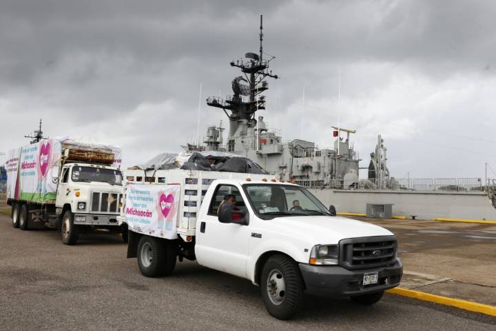 NOTICIAS 23/09/2017Envía Gobierno del Estado ayuda de michoacanos a Oaxaca y Chiapas vía marítima Para que las familias damnificadas por los sismos registrados este mes en Chiapas y Oaxaca, reciban con oportunidad los apoyos otorgados por la sociedad michoacana, la directora general del Sistema DIF Estatal, Rocío Beamonte Romero, entregó 30 toneladas de víveres al Centro de Acopio de la 10 Zona Naval en el Puerto de Lázaro Cárdenas, apoyo que llegará por vía marítima a las comunidades de dichas entidades.