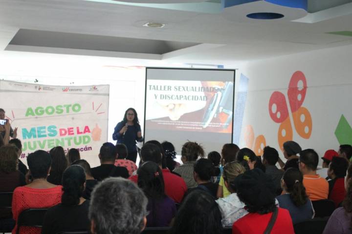 NOTICIAS 29/08/2017Realiza Ijumich Taller de Sexualidad en la Discapacidad. Con el objetivo de visibilizar a las personas con discapacidad y promover sus derechos humanos y reproductivos, el pasado lunes fue realizado el taller de Sexualidad en la Discapacidad, en el marco del mes estatal de la juventud.