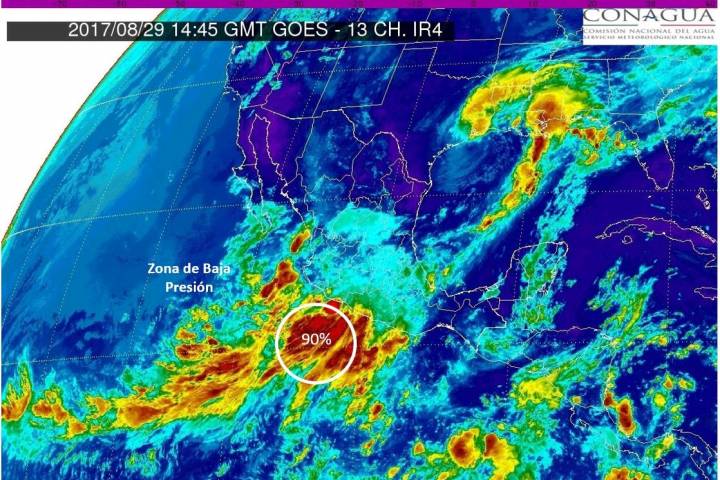De acuerdo con el Sistema Meteorológico Nacional (SMN) se ha desarrollado la depresión tropical "catorce-e" que presenta desplazamiento al noroeste, así como lluvia moderada y actividad eléctrica.