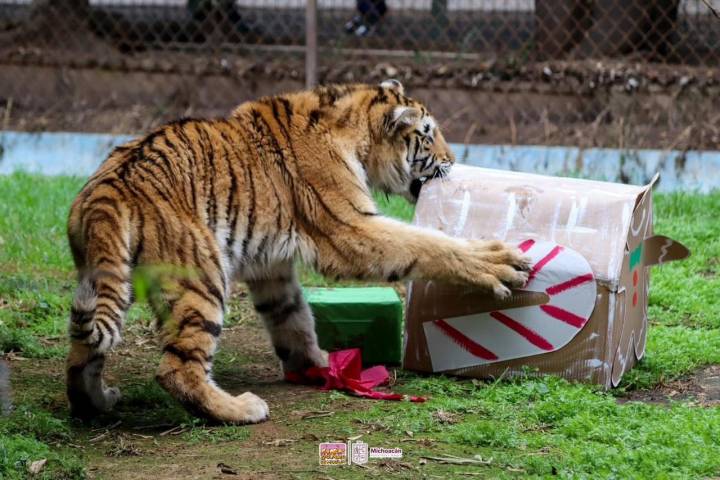 Los especialistas y cuidadores del parque regalaron más de 50 piñatas y cajas en los albergues de diversos animales, como los cachorros de león, tigre y jaguar, rescatados recientemente; así como de primates, antílopes, ciervos, bisontes, el rinoceronte, y e... Ver más...
