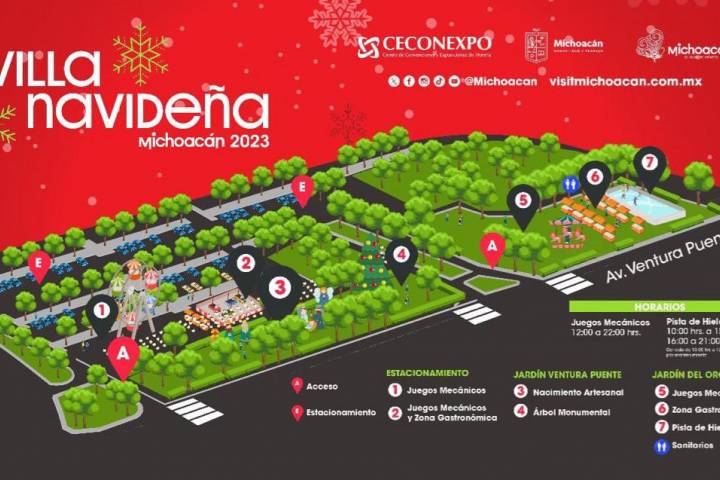 NOTICIAS 27/12/2023Villa Navideña, atractivo imperdible estas vacaciones La Villa Navideña que instaló el Gobierno del Estado continúa recibiendo a cientos de visitantes en el Centro de Convenciones y Exposiciones de Morelia (Ceconexpo) el cual mantiene como atractivo principal la pista de hielo gratuita.