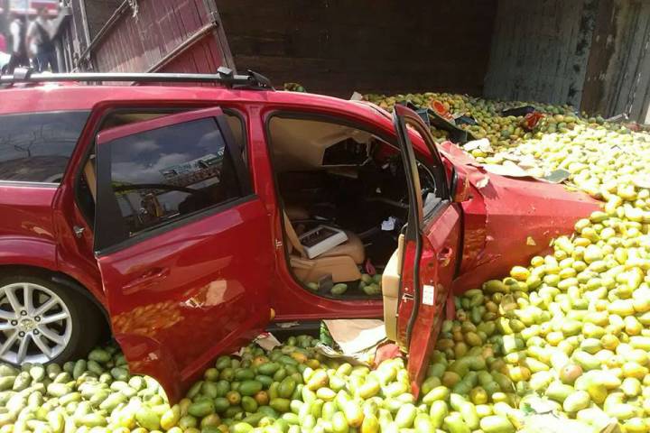 NOTICIAS 14/06/2017Camión manguero aplasta camioneta y queda herida una mujerLa imprudente maniobra de un chofer de camión torton, el cual transportaba mangos, ocasionó un aparatoso accidente sobre la Avenida Madero Poniente, pues volcó y cayó sobre otro vehÃculo, cuya conductora resultó lesionada, según datos obtenidos en la cobertura de los hechos.