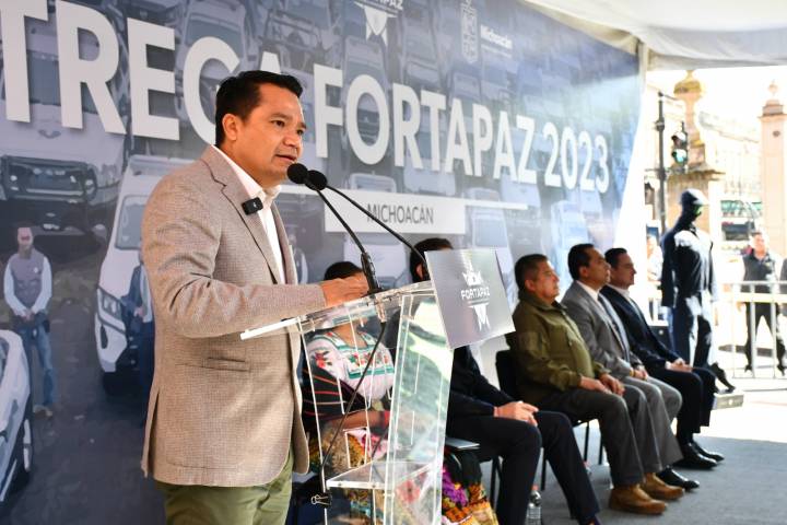 NOTICIAS 08/12/2023Con 189 mdp del Fortapaz entregan equipo a 52 municipios y 11 autogobiernosEl Gobierno de Michoacán, a través del Secretariado Ejecutivo del Sistema Estatal de Seguridad Pública (SESESP), entregó equipamiento a 52 municipios, 11 comunidades con autogobierno y tres dependencias, con una inversión de 189 millones 490 mil pesos del Fondo para el Fortalecimiento para la Paz (Fortapaz).