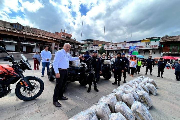 Con la representación del secretario de Gobierno, Carlos Torres Piña, el delegado José Guadalupe Coria Solís, entregó los equipamientos para los elementos de seguridad pertenecientes al Concejo Mayor de Cherán.