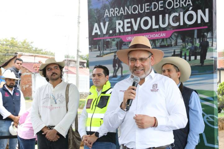 NOTICIAS 03/06/2025Bedolla continúa modernización de la avenida Revolución en UruapanCon una inversión estatal de 62 millones de pesos, el gobernador Alfredo Ramírez Bedolla arrancó de manera formal, la segunda etapa de la modernización con concreto hidráulico de la avenida Revolución de Uruapan para contribuir al desarrollo y modernización de la ciudad, "porque el teleférico no llega solo".
