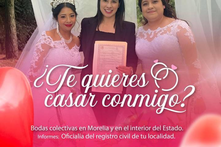 NOTICIAS 06/02/2025Conoce los requisitos para las bodas colectivas del 14 de febrero en Michoacán A una semana de finalizar los registros de la campaña de bodas colectivas ¿Te quieres casar conmigo?, la Secretaría de Gobierno, a través del Registro Civil, reitera la invitación a todas las parejas interesadas en formalizar su unión a participar de manera gratuita el próximo 14 de febrero.