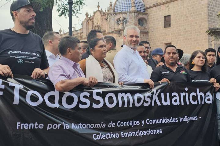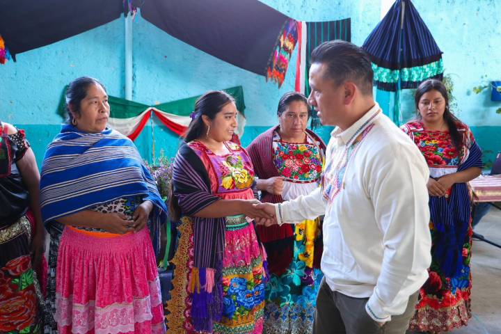 Ante autoridades del Concejo de autogobierno, maestras artesanas y habitantes de la localidad, el encargado de la política interna destacó la voluntad y compromiso del gobernador Alfredo Ramírez Bedolla con los pueblos originarios.