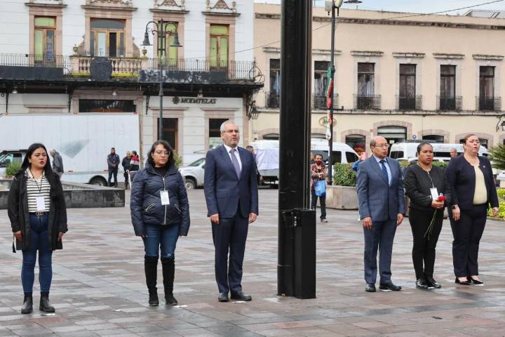 NOTICIAS 15/09/2024Encabeza Bedolla homenaje a víctimas del 15 de septiembreEl gobernador Alfredo Ramírez Bedolla encabezó el izamiento de bandera a media asta y colocación de ofrenda floral en la plaza Melchor Ocampo, en homenaje por el 16 aniversario de las víctimas del 15 de septiembre del 2008.