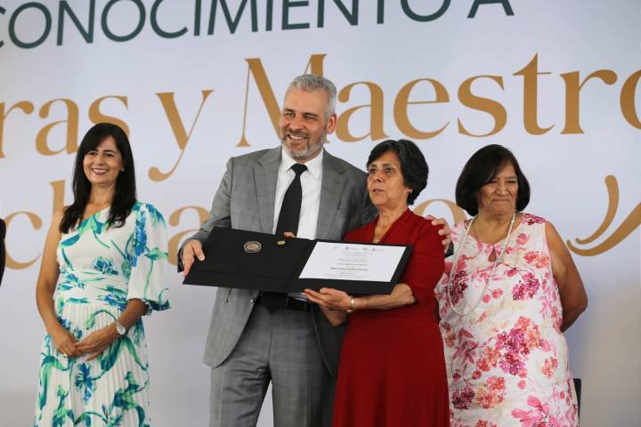 Frente a casi 2 mil maestras, maestros y trabajadores de la educación reunidos en la entrega de medallas por años de servicio, el gobernador Alfredo RamÃrez Bedolla y la secretaria Gabriela Molina, agradecieron que hoy los docentes son aliados: "Con ustedes todo, si ustedes nada".