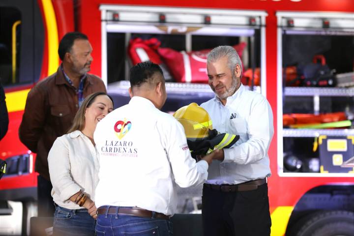 NOTICIAS 23/02/2024Encabeza Bedolla entrega histórica de equipamiento para bomberos por más 142 mdpEl gobernador Alfredo Ramírez Bedolla realizó una entrega histórica de equipamiento para 11 corporaciones de bomberos municipales y de la Coordinación de Protección Civil Estatal, valuado en más de 142 millones de pesos, a fin de fortalecer la capacidad de respuesta para la atención a incendios y siniestros.