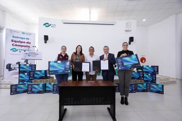 Lo anterior, al entregar a nombre del Gobierno de Michoacán, 195 equipos de cómputo a 13 planteles del Colegio de Educación Profesional Técnica del Estado de M... Ver más...