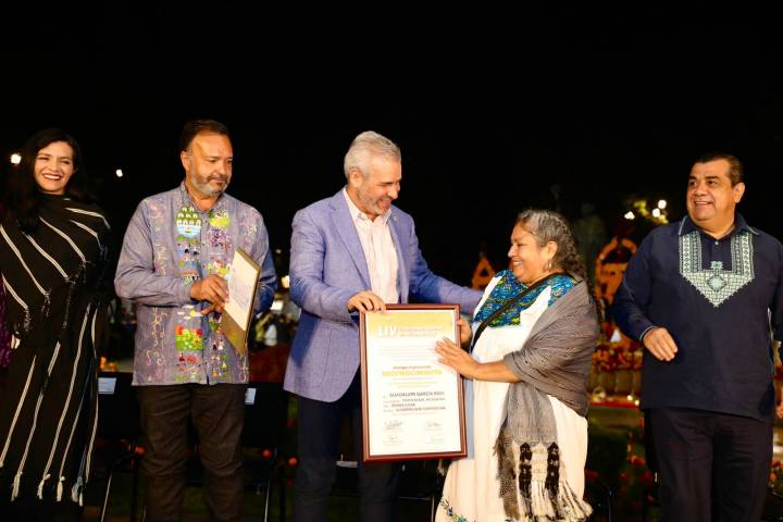 NOTICIAS 02/11/2023Artesana de Angahuan gana premio especial en concurso estatal Con un huanengo con grecas hecho en telar de cintura, la maestra artesana Cecilia Sosa Nico, de la localidad de Angahuan, en el municipio de Uruapan, se convirtió en la ganadora del máximo galardón del 54 Concurso Estatal de Artesanías en Pátzcuaro, celebrado en el marco de la tradicional Noche de Muertos.