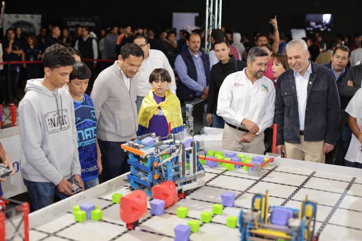 En la inauguración, el mandatario refirió que este tipo de torneos fortalece el desarrollo de conocimientos y habilidades en tecnología y robótica que, combinado con la Inteligencia Artificial, permite a las nuevas generaciones estar a la vanguardia.