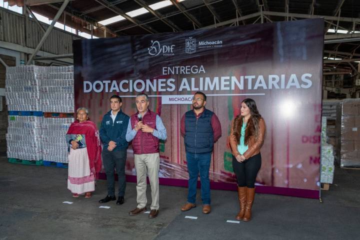 NOTICIAS 11/10/2023Entrega DIF Michoacán más de 21 mil dotaciones alimentarias El Sistema DIF Michoacán, que encabeza la presidenta honoraria del Patronato, Grisel Tello Pimentel, entregó más de 21 mil dotaciones alimentarias a los municipios de Morelia, Coeneo, y a la comunidad de Santa Fe de la Laguna, en Quiroga.