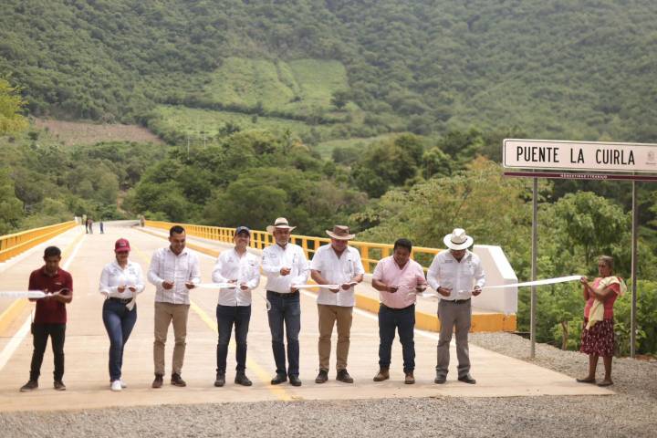 NOTICIAS 13/09/2023Inaugura Bedolla puente La Cuirla; obra que conecta a 8 comunidades de Aquila Tras siete años de suspenderse la construcción del puente "La Cuirla", del tramo Pomaro-Cuirla, del municipio de Aquila, por la anterior administración, el gobernador Alfredo Ramírez Bedolla, inauguró la conclusión de la obra en beneficio de ocho comunidades indígenas, del pueblo nahuatl de la región.