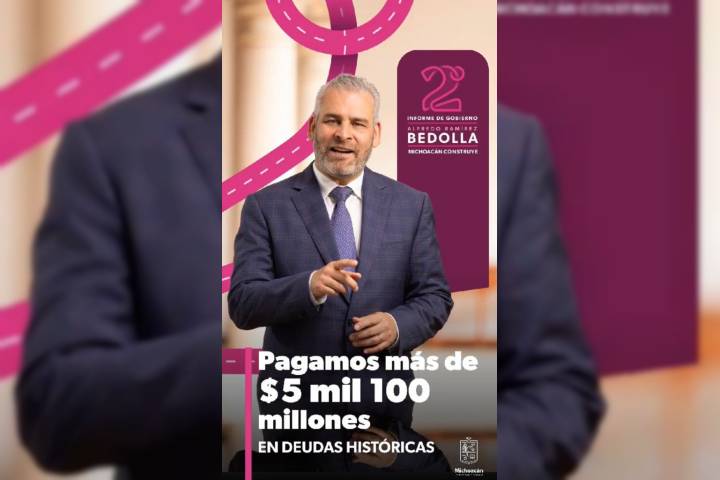 NOTICIAS 13/09/2023Pagó Gobierno de Bedolla más de 5 mil 100 mdp de deuda heredadaTras recibir un estado en quiebra, con adeudos en varios frentes, el Gobierno de Michoacán ha ordenado, estabilizado y transparentado las finanzas públicas. Tan solo este segundo año se pagaron 5 mil 100 millones de pesos de deudas de administraciones anteriores.