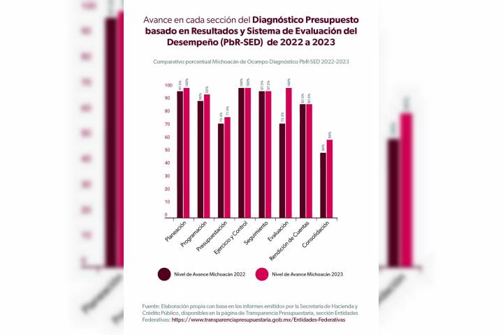 En la etapa de planeación, pasó de un 97.5 por ciento en 2022 a un 100 por ciento en 2023, al vincular los programas presu... Ver más...