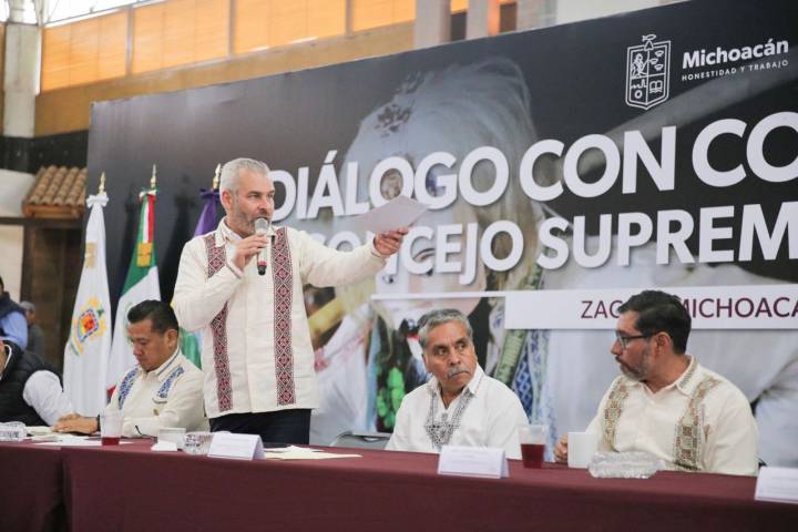En reunión con integrantes del Consejo Supremo IndÃgena de Michoacán, realizada en la comunidad de Zacán, municipio de Los Reyes, el mandatario externó la necesidad de robustecer con equipo e infraestructura de cooperaciÃ... Ver más...