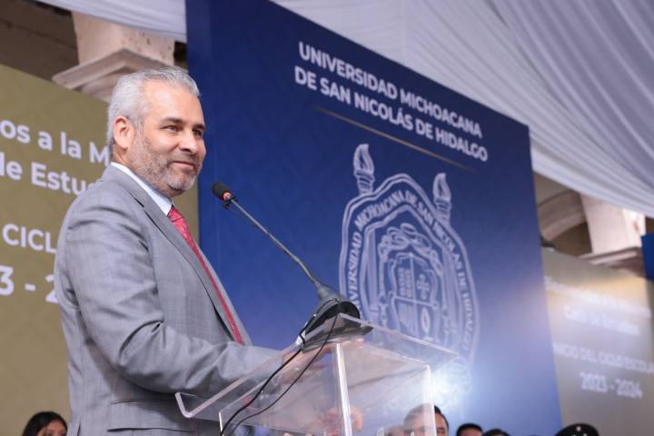 NOTICIAS 14/08/2023Inaugura Bedolla inicio de ciclo escolar 2023-2024 de la UMSNHEl gobernador Alfredo Ramírez Bedolla inauguró el arranque del ciclo escolar 2023-2024 de la Universidad Michoacana de San Nicolás de Hidalgo, donde refrendó su compromiso de apoyar la educación.