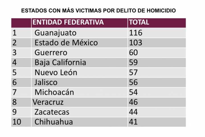 NOTICIAS 15/04/2023Continua tendencia a la baja en homicidios; Michoacán sale del top 5 de estados con mayor incidenciaMichoacán continúa en una tendencia a la baja en homicidios dolosos, ubicándose por primera vez en años en la séptima posición a nivel nacional, fuera de los estados con mayor número de sucesos.