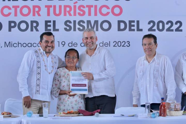 NOTICIAS 19/04/2023Entrega Bedolla 8.7 mdp a prestadores de servicios turísticos de la Costa afectados por sismo de 2022De forma histórica, prestadores de servicios turísticos de Aquila y Coahuayana recibieron del gobernador Alfredo Ramírez Bedolla, apoyos a fondo perdido que ascienden a los 8.7 millones de pesos para sus enramadas, hoteles y restaurantes.