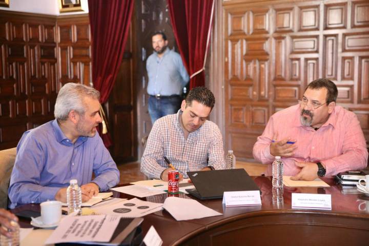 En reunión de trabajo con los secretarios de Comunicaciones y Obras Públicas, Rogelio Zarazúa Sánchez; de Administración y Finanzas, Luis Navarro García; de Desarrollo Urbano y Movilidad, Gladyz Butanda Macías y de Medi... Ver más...