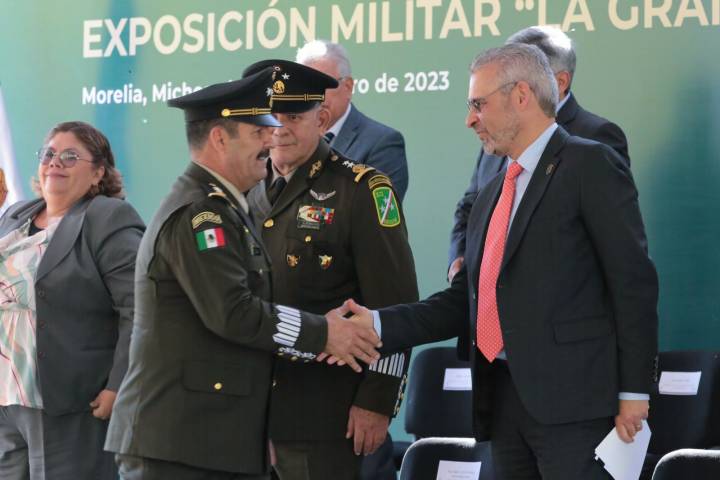 NOTICIAS 30/01/2023Inaugura Bedolla exposición "La Gran Fuerza de México"El gobernador Alfredo Ramírez Bedolla inauguró la exposición militar "La Gran Fuerza de México", acompañado de la presidenta honoraria del Sistema DIF estatal, Grisel Tello Pimentel.