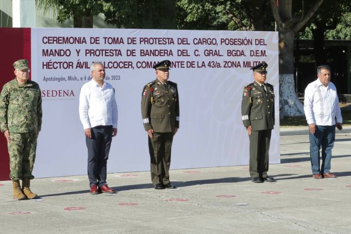 NOTICIAS 04/01/2023Coordinación de los tres niveles de gobierno ha permitido avances en seguridad para Tierra Caliente: Bedolla El gobernador Alfredo Ramírez Bedolla asistió a la ceremonia de toma de protesta de cargo y bandera, así como posesión de mando del Gral. de Brigada Diplomado Estado Mayor, Héctor Ávila Alcocer, como comandante de la 43/a Zona Militar.