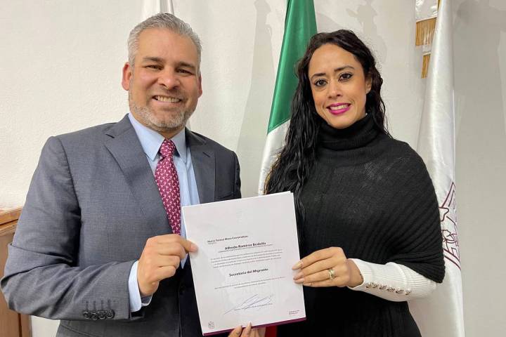 NOTICIAS 26/12/2022Entrega Bedolla nombramientos a titulares de Semigrante y CobaemEl gobernador Alfredo Ramírez Bedolla nombró a María Teresa Mora Covarrubias titular de la Secretaría del Migrante (Semigrante), y a David Alfaro Garcés como nuevo director del Colegio de Bachilleres del Estado de Michoacán (Cobaem).