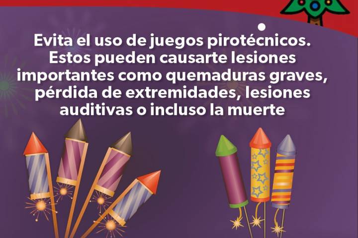 NOTICIAS 26/12/2022Ante lesiones por pirotecnia, pide Segob evitar su usoTres menores lesionados por pirotecnia fue el saldo de las festividades navideñas, informó el coordinador estatal de Protección Civil, Jorge Romero Alvarado.