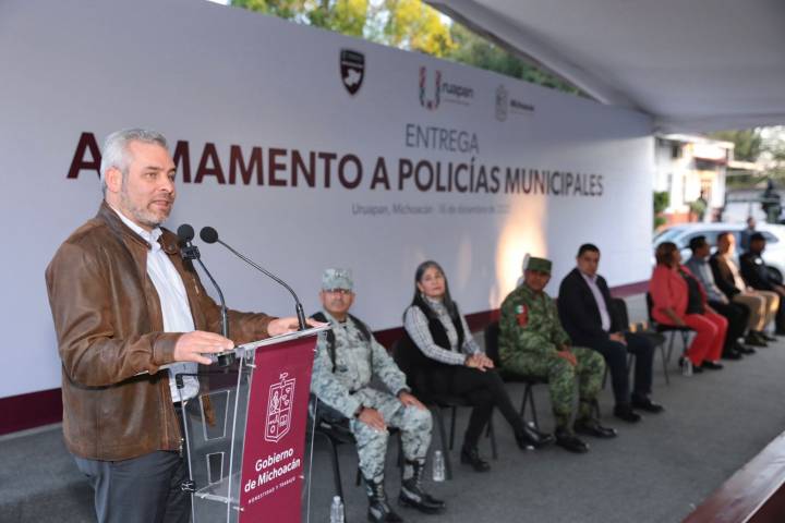 NOTICIAS 16/12/2022Entrega Bedolla armamento a policías municipales de Uruapan El gobernador Alfredo Ramírez Bedolla entregó 30 equipos de armas largas a policías municipales de Uruapan, con lo que se fortalece a la corporación como parte de la estrategia de pacificación.