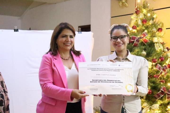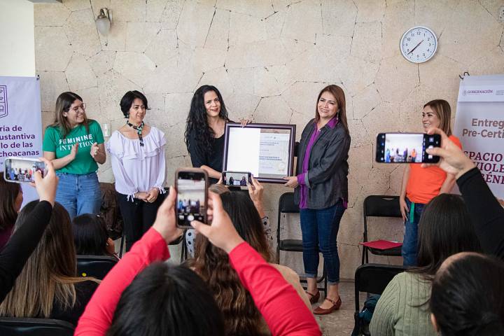 NOTICIAS 03/12/2022Recibe Seimujer pre-certificado nacional como Espacio Libre de ViolenciaEste sábado, la Secretaría de Igualdad Sustantiva y Desarrollo de las Mujeres Michoacanas (Seimujer) recibió la pre-certificación como Espacio Libre de Violencia de Género, a cargo de la Comisión Nacional para Prevenir y Erradicar la Violencia Contra las Mujeres (CONAVIM).